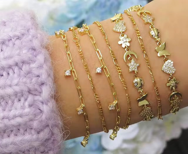 18k gold plated stainless steel bracelet with high quality zircon stone .