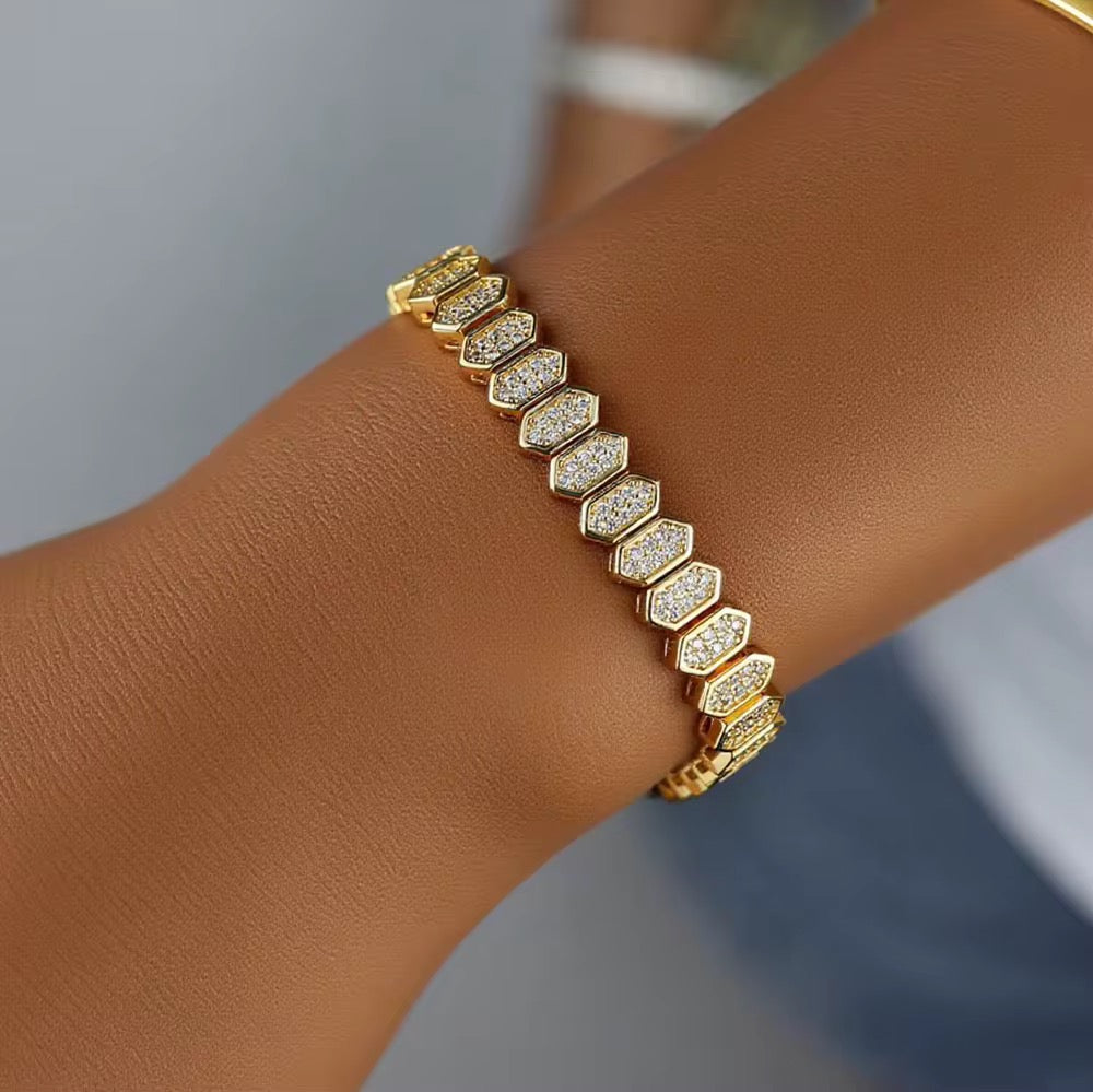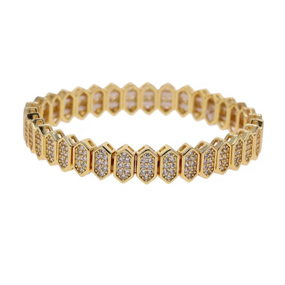 18k gold plated stainless steel bracelet with high quality zircon stone .