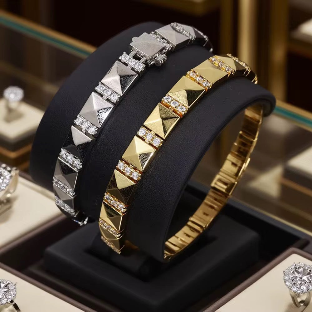 18k gold plated stainless steel bracelet with high quality zircon stone .