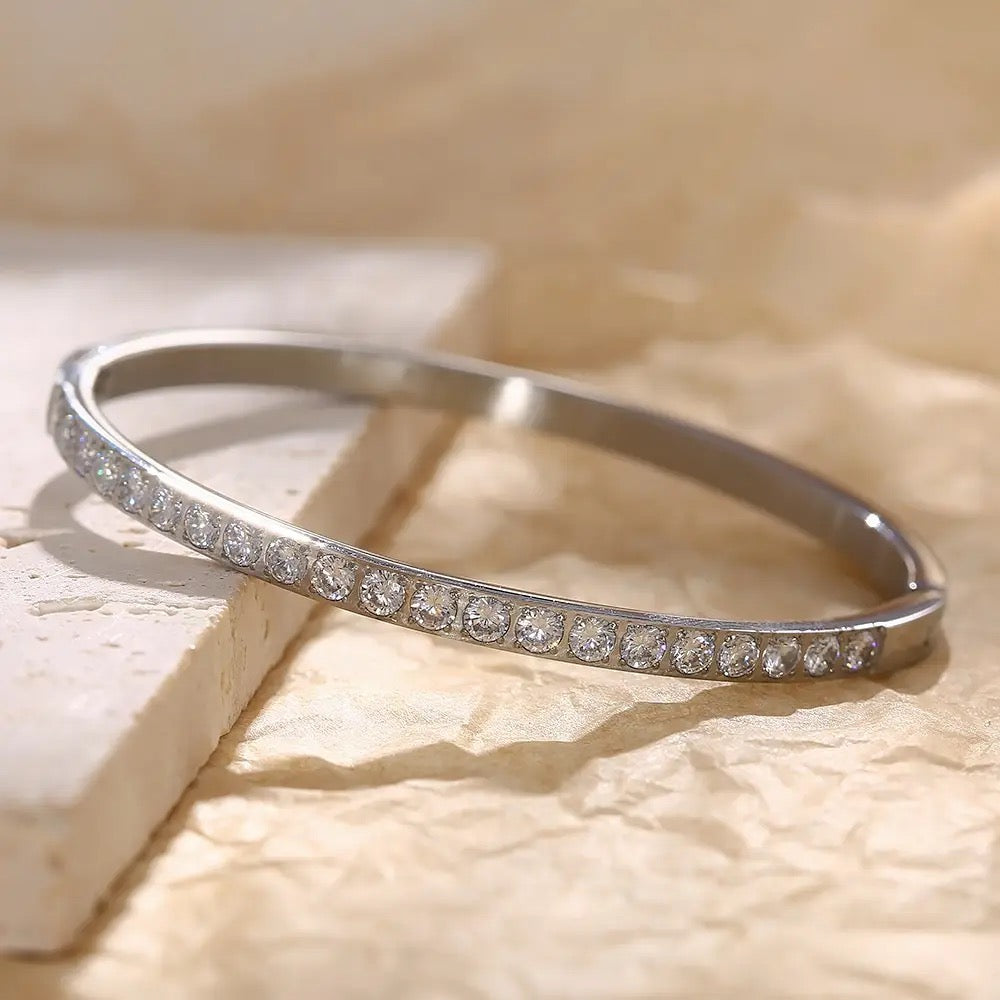 waterproof .tarnish free and hypoallergenic stainless steel bracelet .