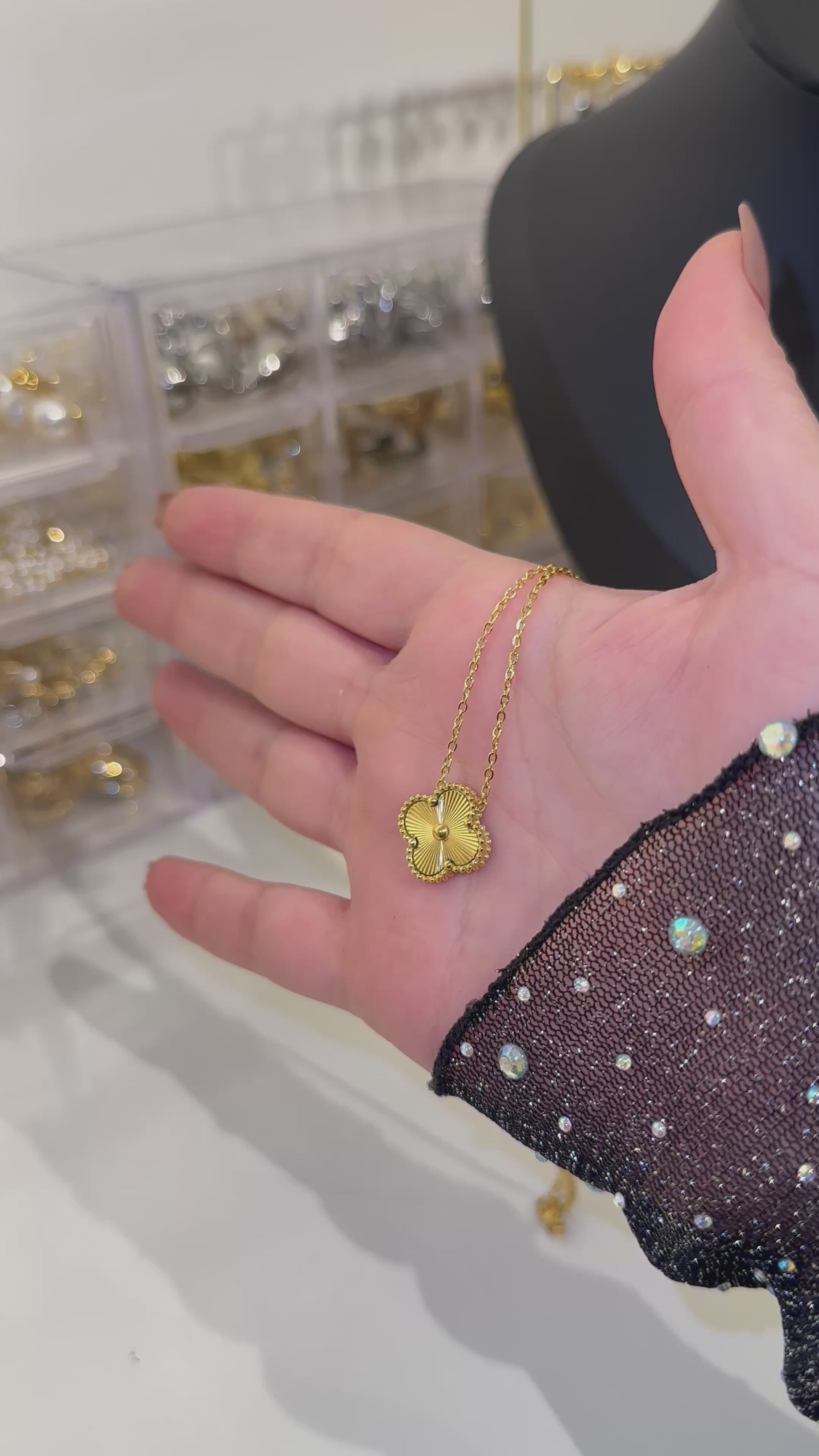 Stainless steel waterproof, hypoallergenic non tarnish four leaves necklace.