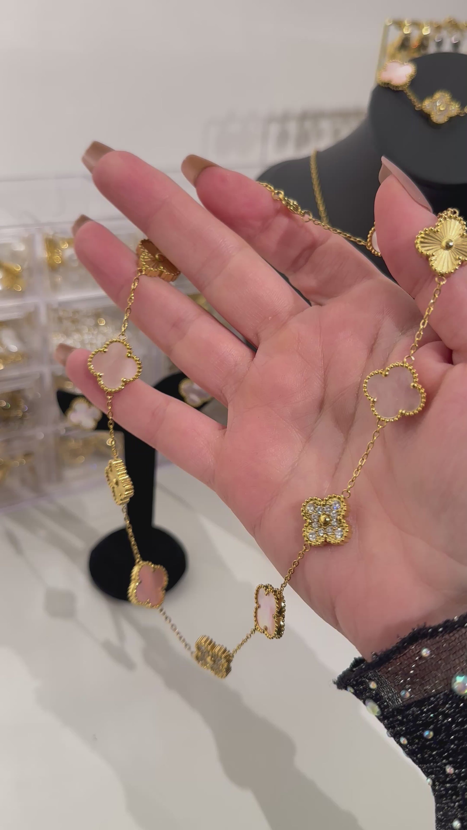 Stainless steel waterproof, hypoallergenic non tarnish four leaves necklace .