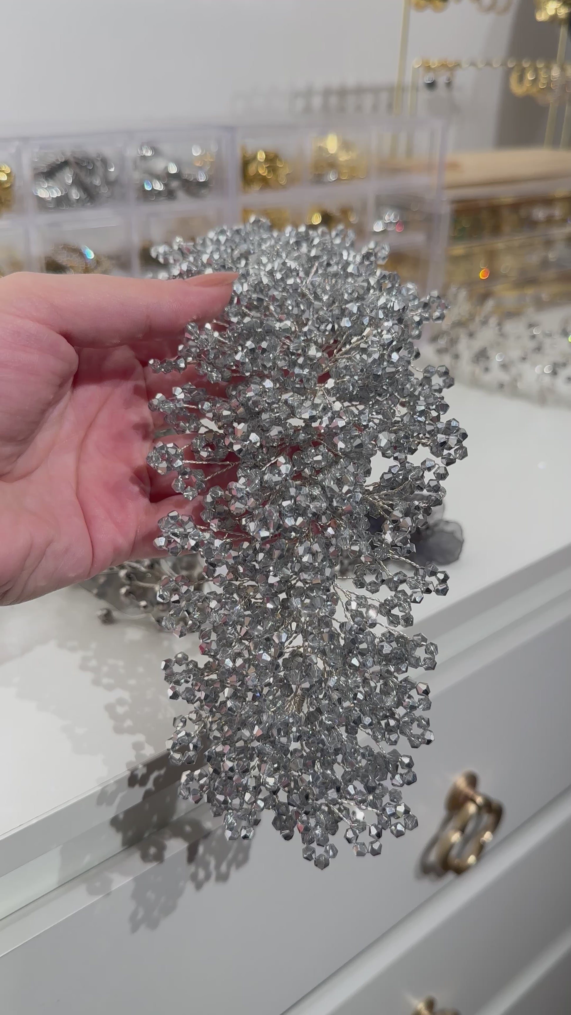 Gray crystal headpiece