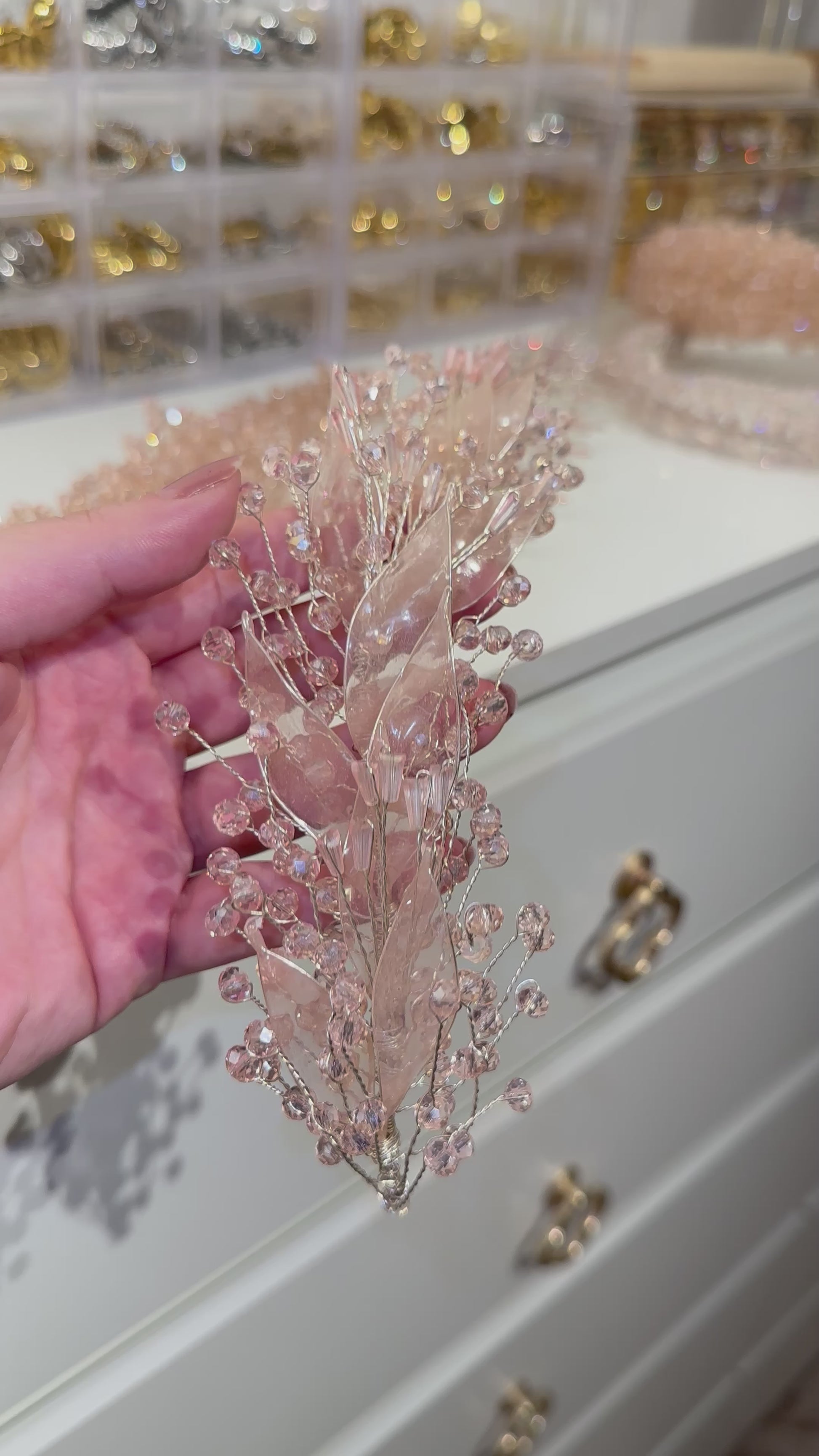 Elegant headpiece made of turkish crystals in light pink