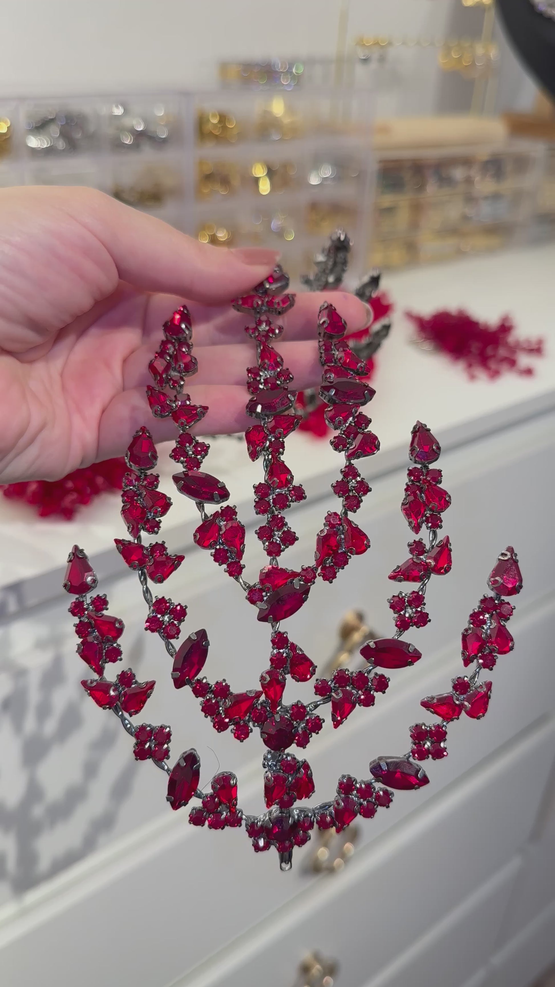 Elegant headpiece made of turkish crystals in dark red