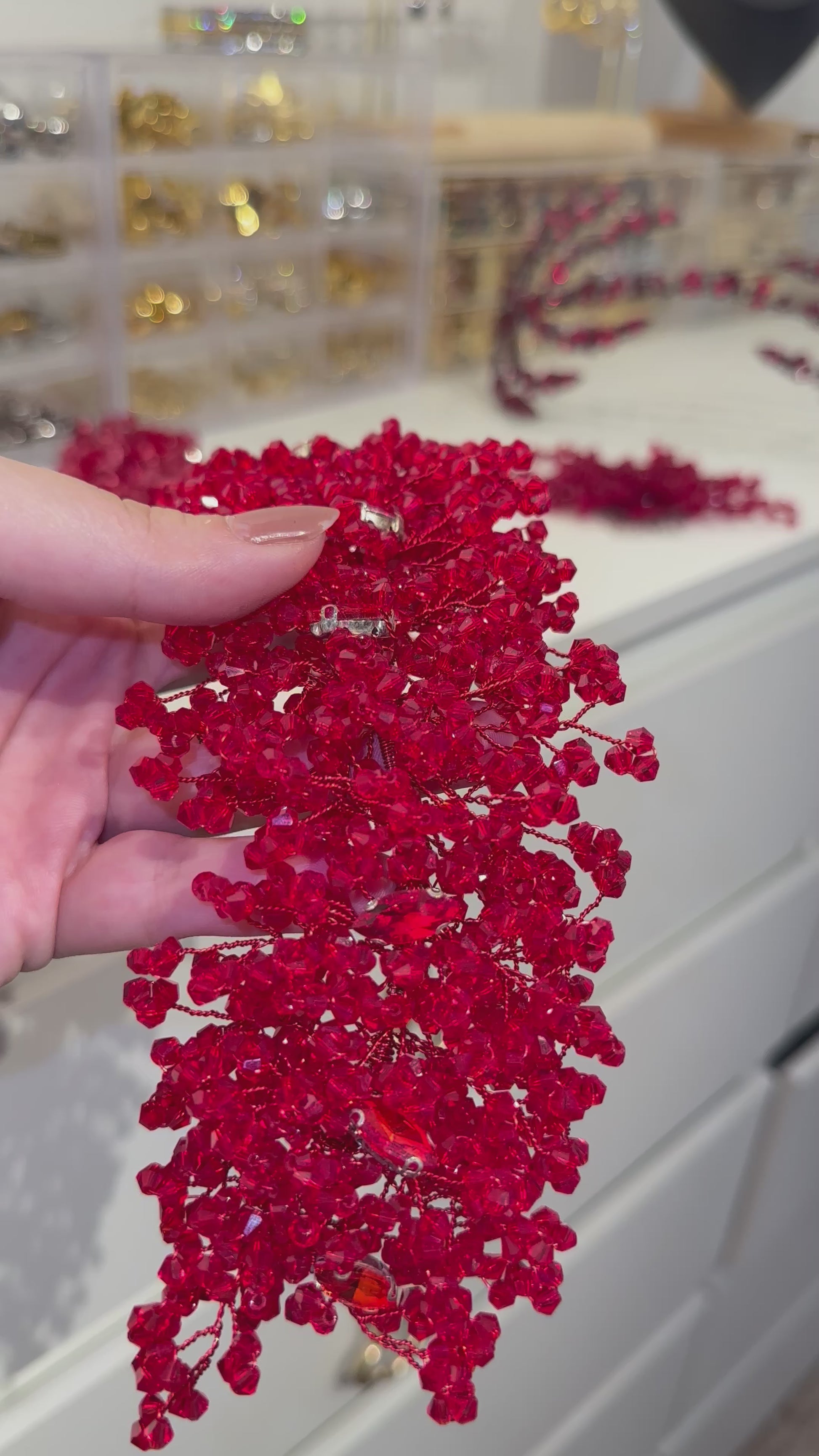 Red headpiece made of turkish crystals to give your look a special pop of color