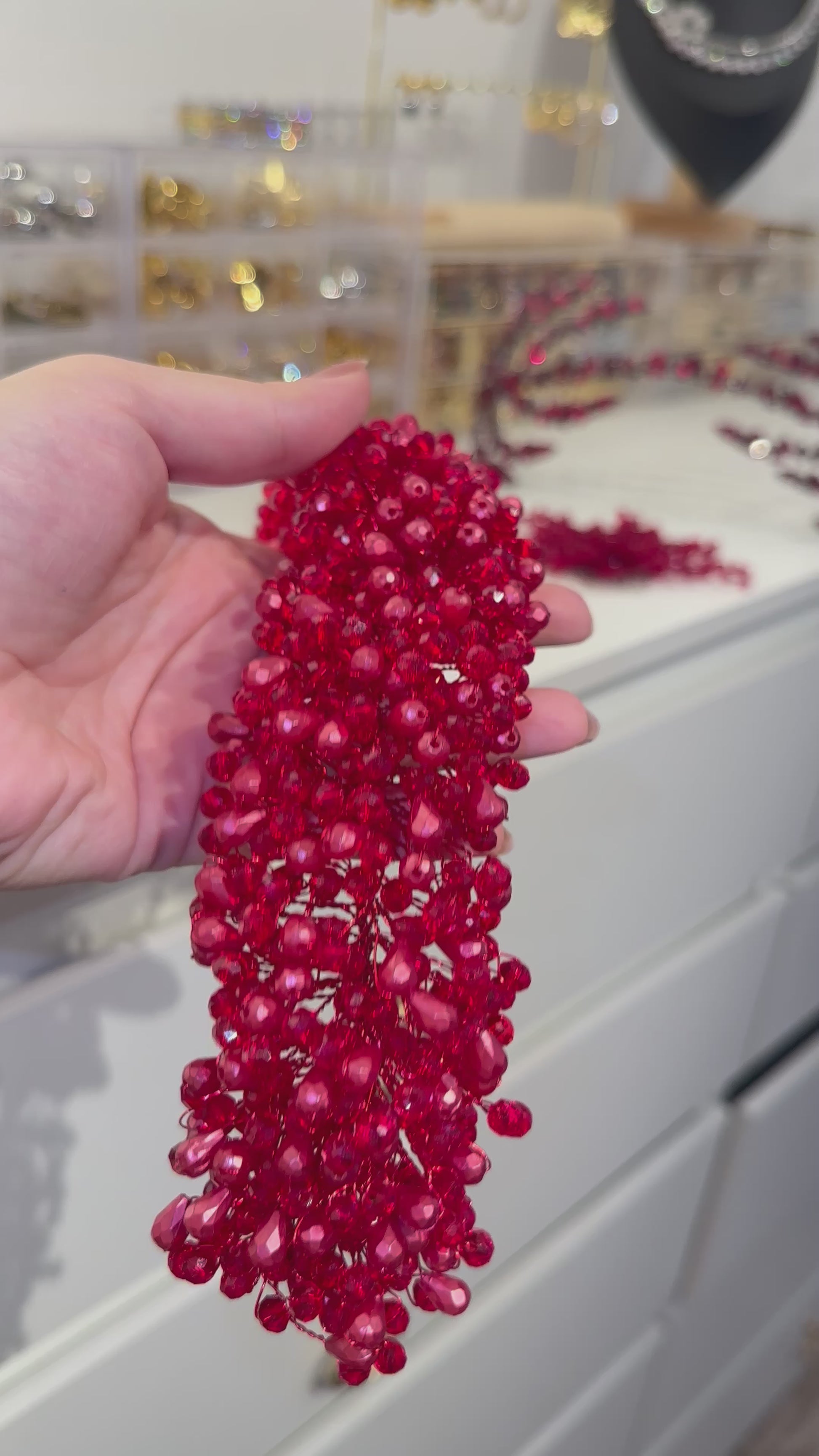 Red headpiece made of turkish crystals to give your look a special pop of color