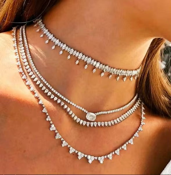 waterproof stainless steel necklace full of A5 zircon stones