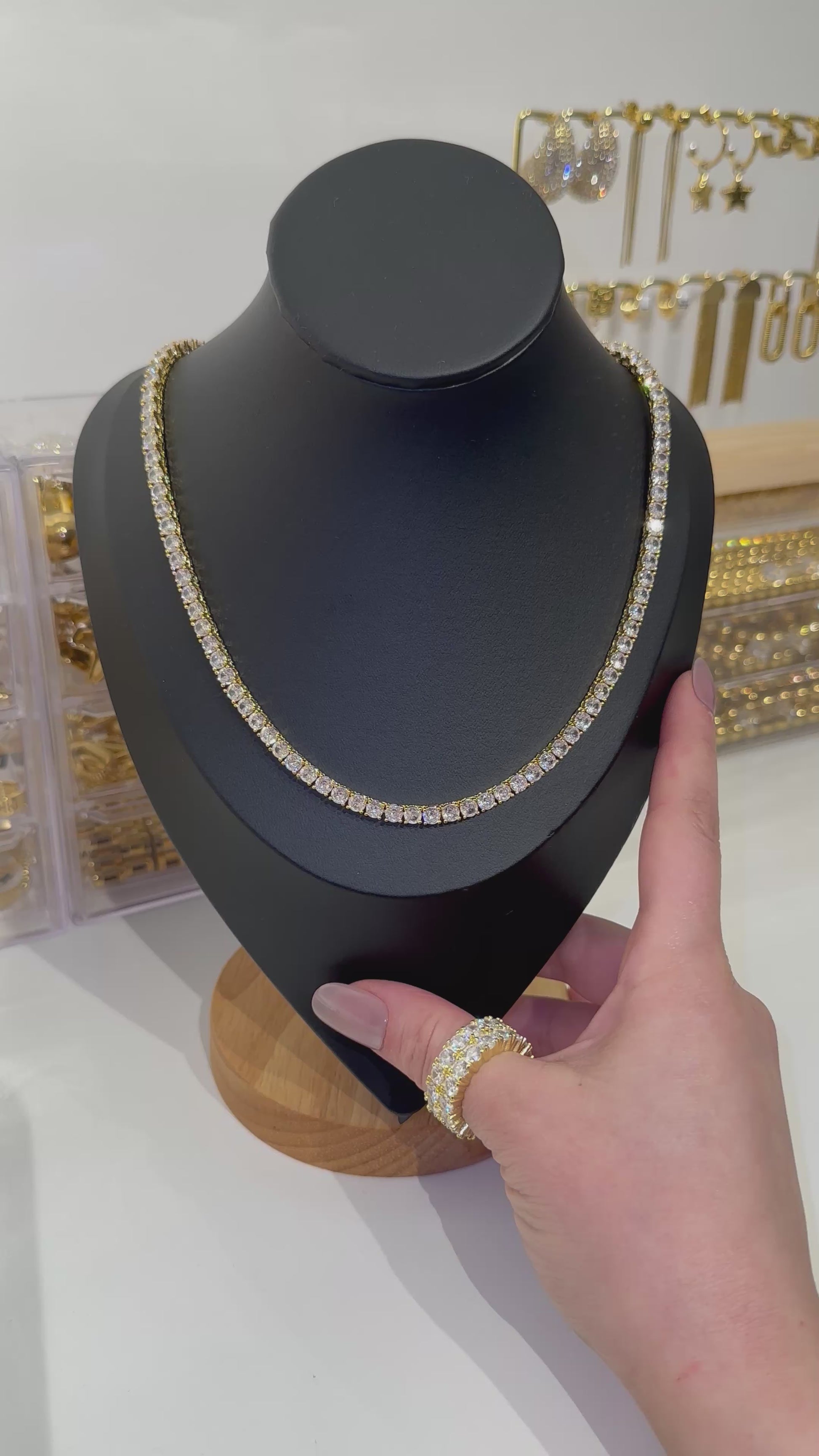 waterproof stainless steel trendy high quality tennis necklace with 5A zircon stone .
