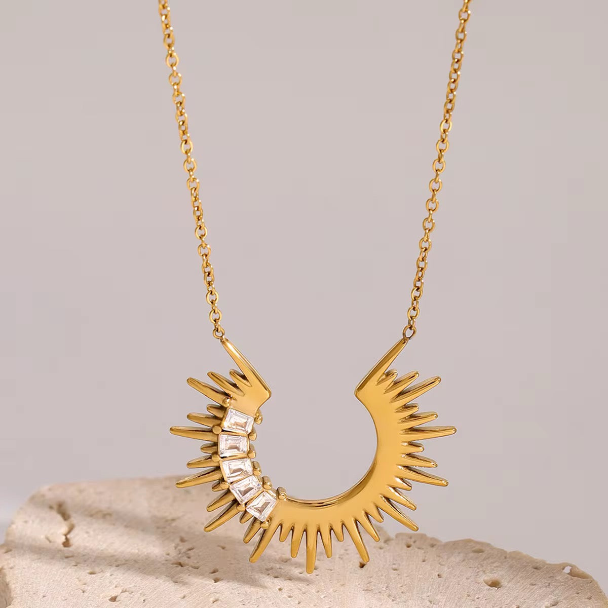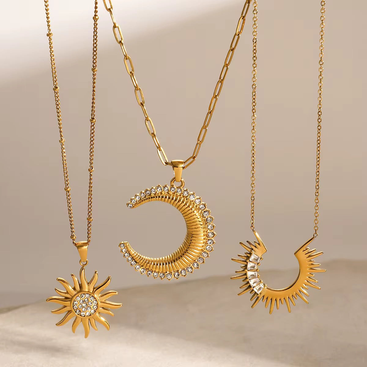 Sun and moon necklace collection made of waterproof stainless steel ,18k gold plated ,tarnish free , neckle free and hypoallergenic.