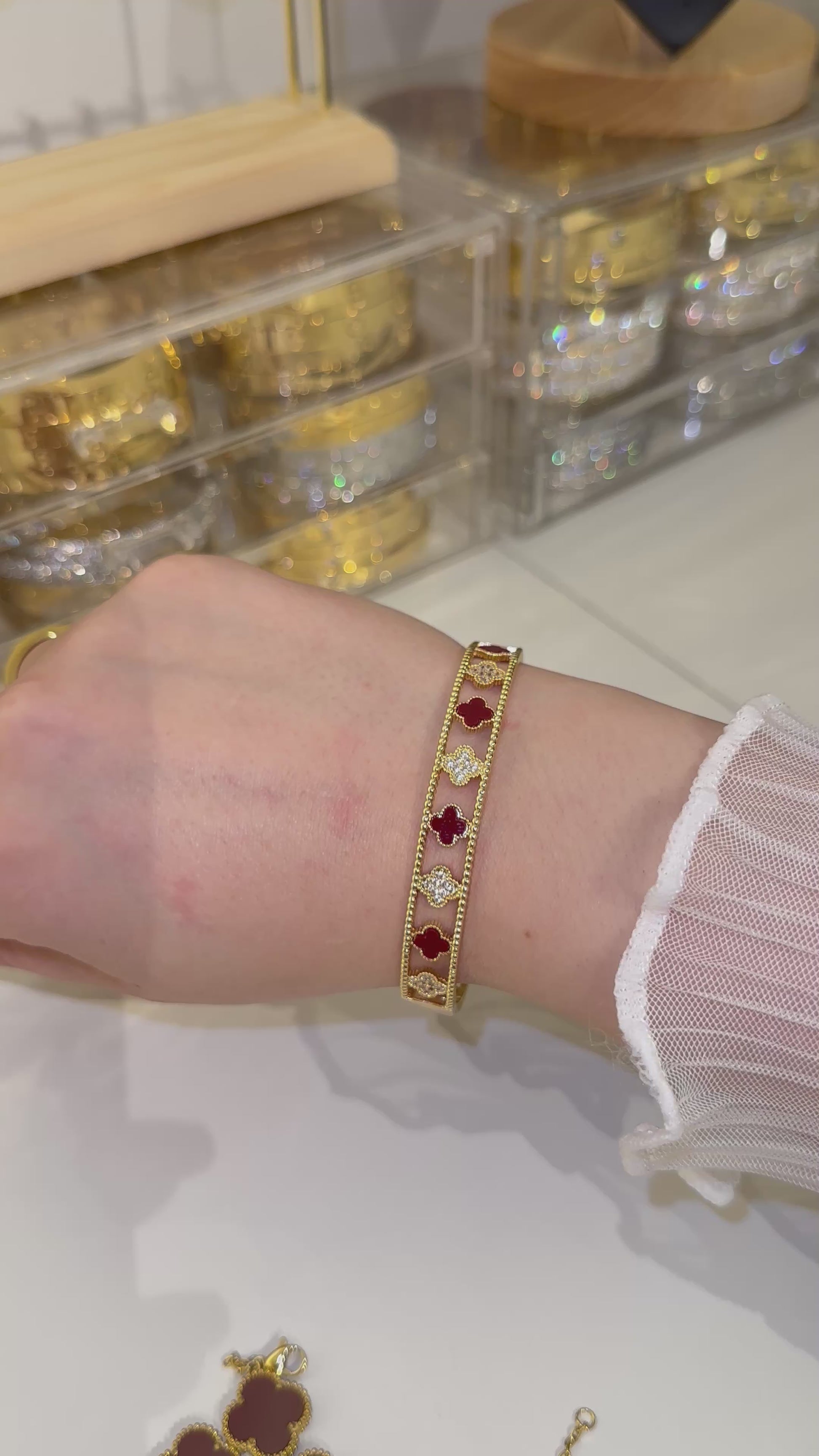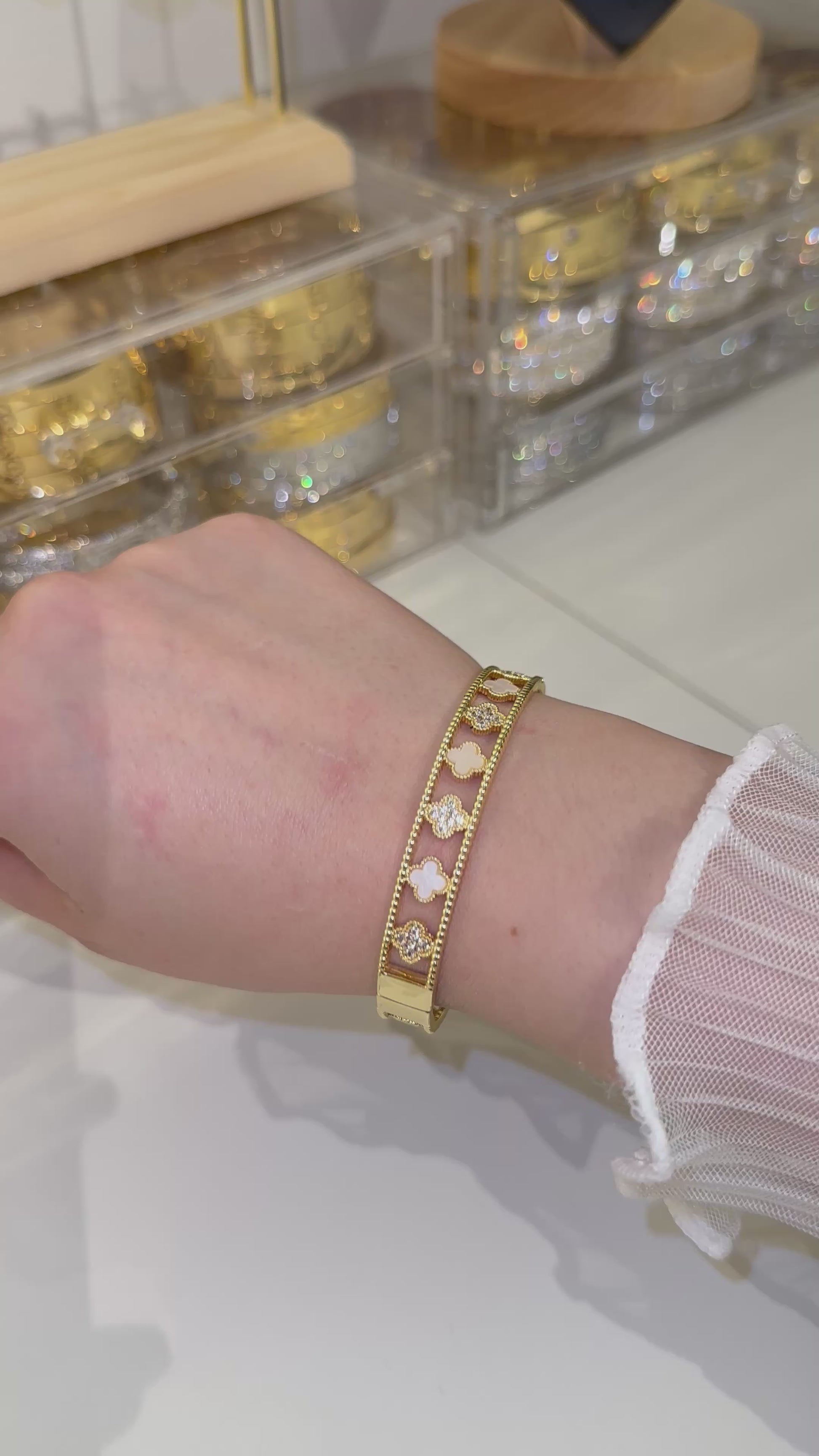 Stainless steel waterproof, hypoallergenic non tarnish four leaves racelet