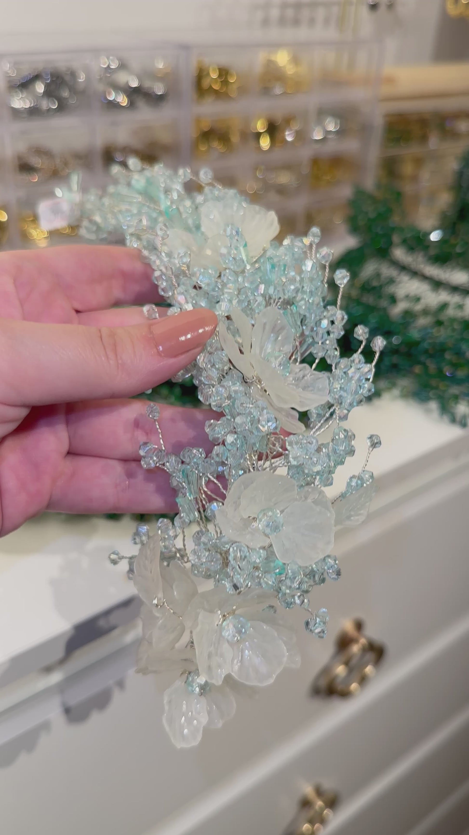 Mint green headpiece made of high quality Turkish crystal to give you the perfect shine