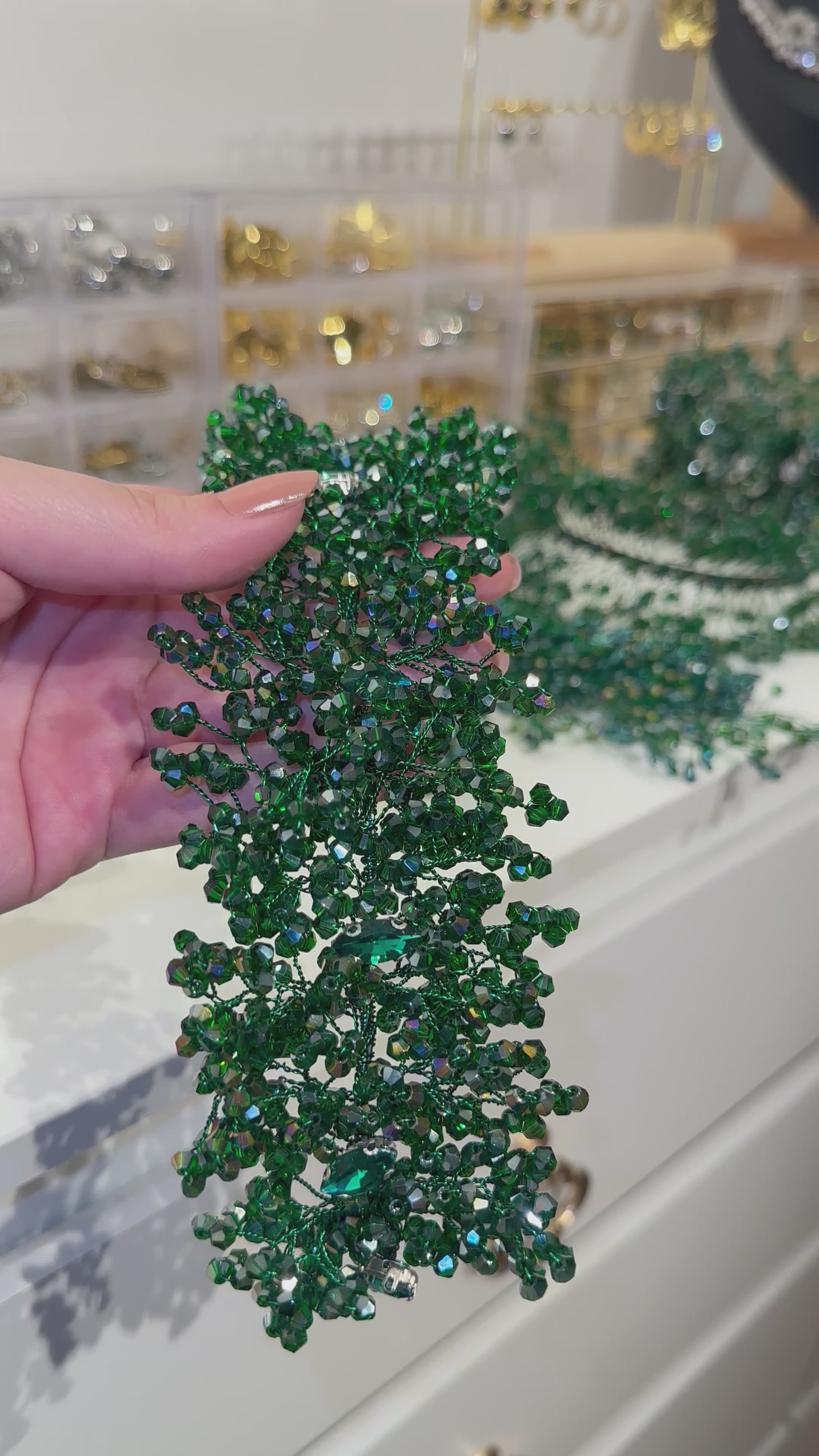 green headpiece made of high quality Turkish crystal to give you the perfect shine