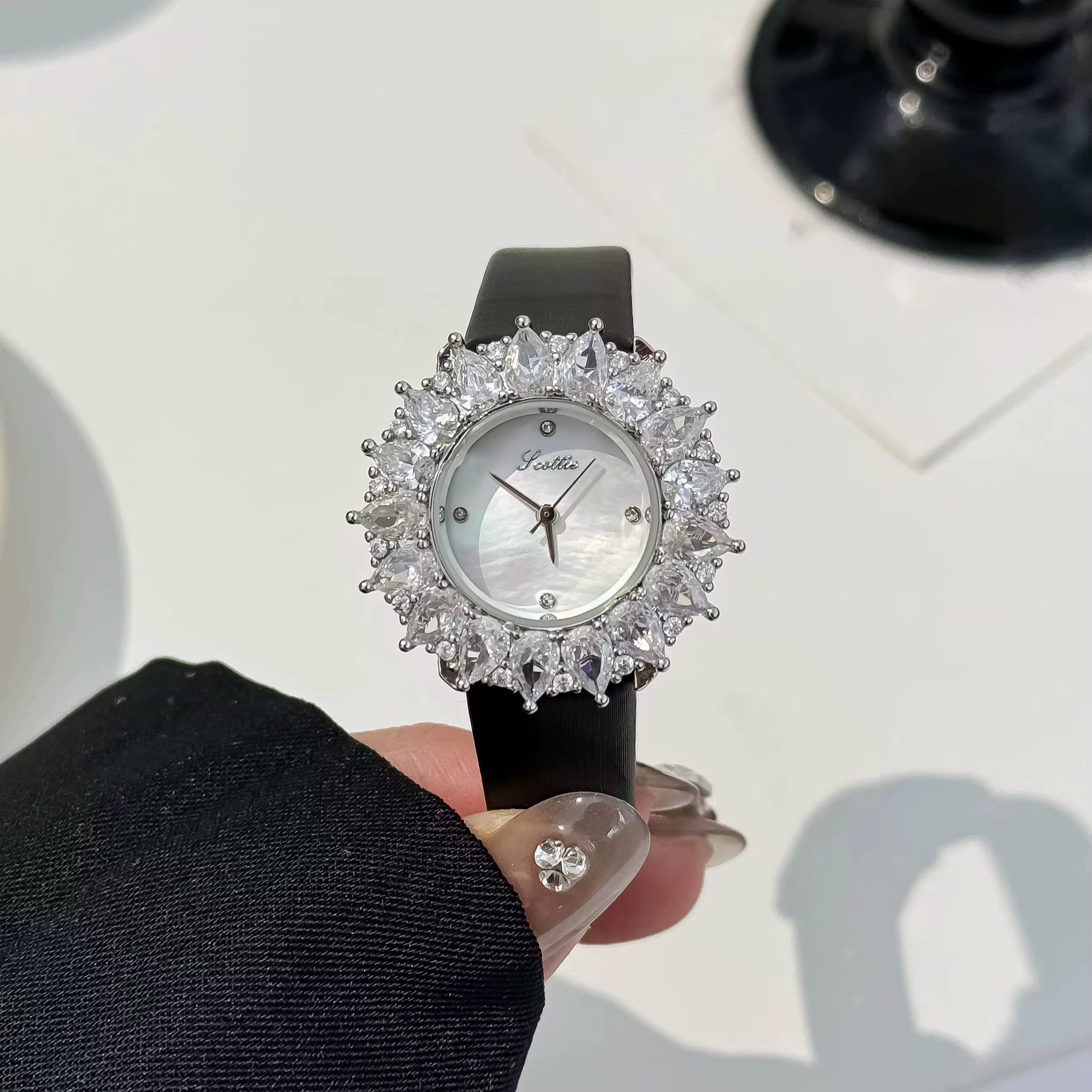 black lather with white zirconia stone