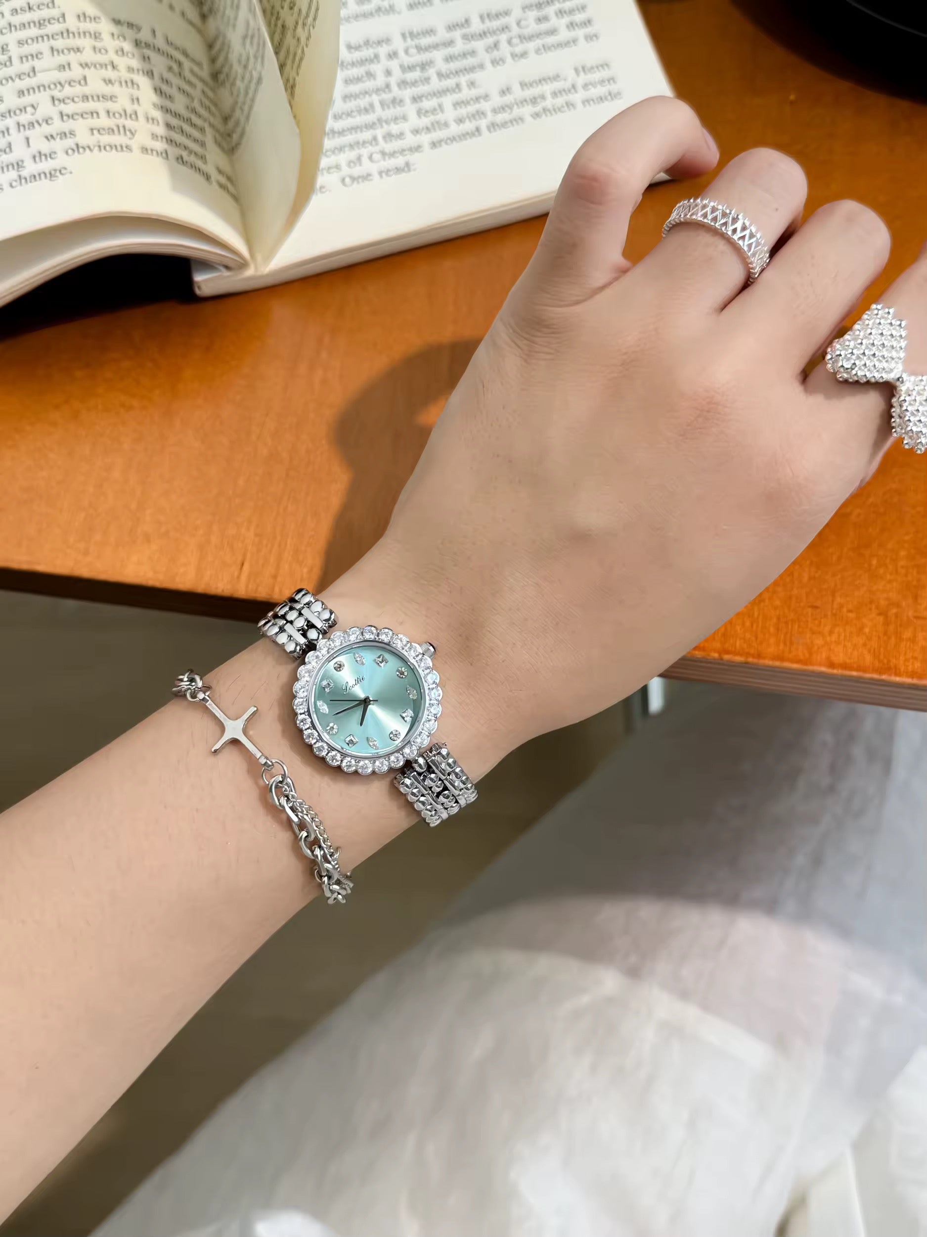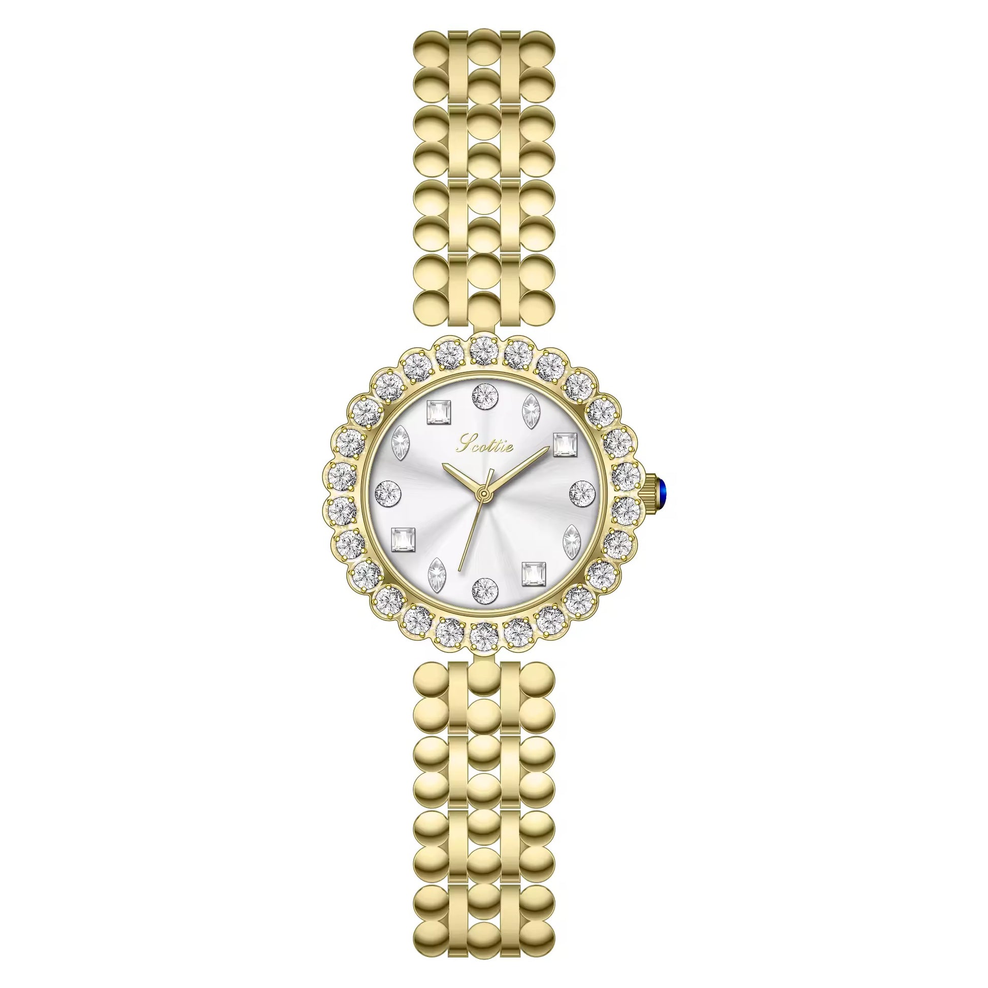 Extremely elegant woman stainless steel watch mixed with high quality zirconia stone.